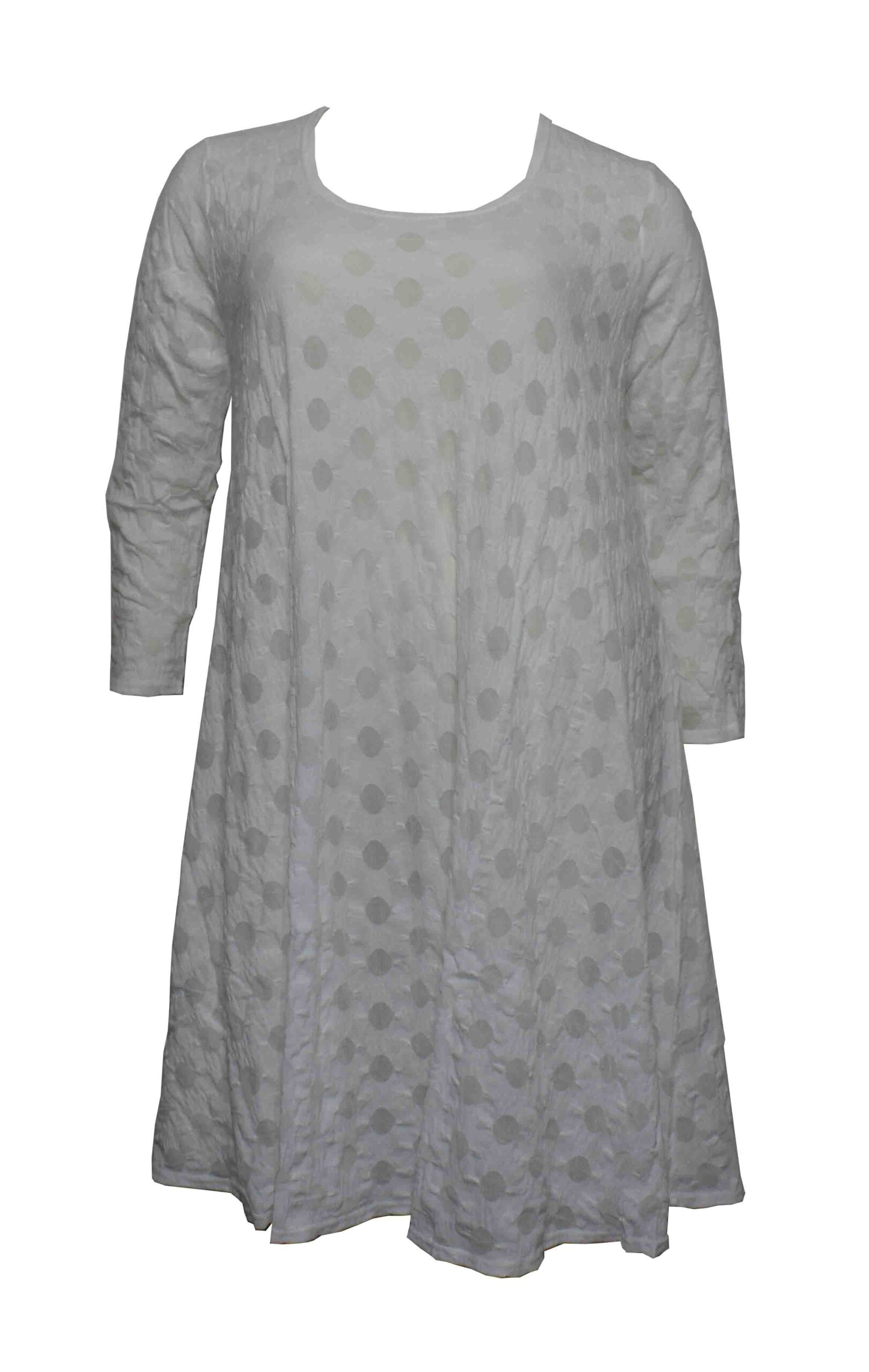 Boris Industries A-Lijn Jurk 3/4 mouw Balletje Nieuw. LET OP dit is een nieuwe balletjesstof die lijkt op de oude balletjesstof maar wel iets anders is. 95% polyamide 5% elastomeer. Ruglengte 100cm