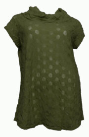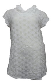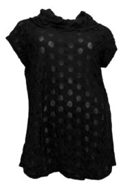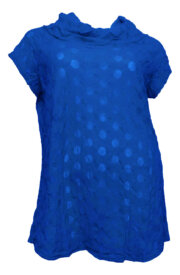 Shirt korte mouw met boothals in de balletjesstof. Ruglengte maat 3 is 75 cm. 95% polyamide 5% elastomeer.